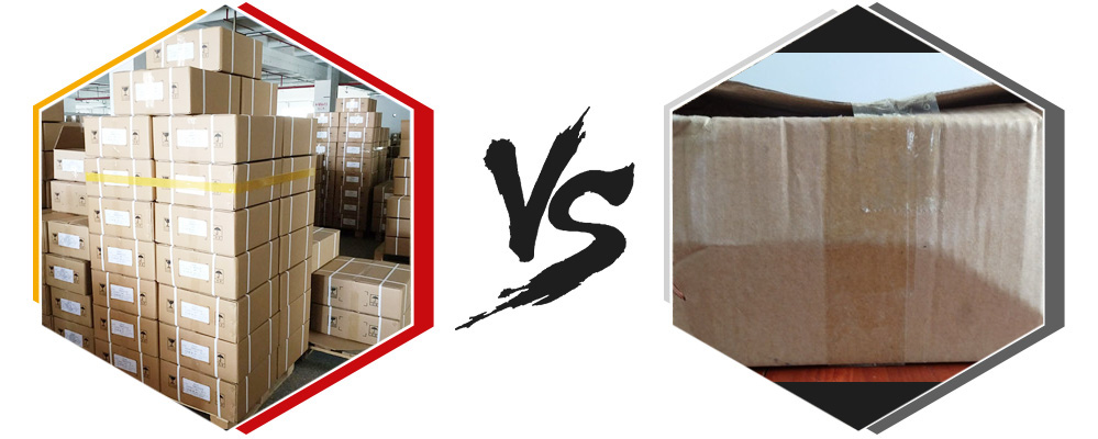 其他生產(chǎn)商為降低成本,一般采用普通紙箱,長(zhǎng)途運(yùn)輸中很容易造成紙箱破損、變形,內(nèi)包裝使用廉價(jià)再生料膠袋包裝,容易破損。 導(dǎo)致問題:包裝變形,容易受潮,貨物損失,甚至中途丟失,誤工誤時(shí)。